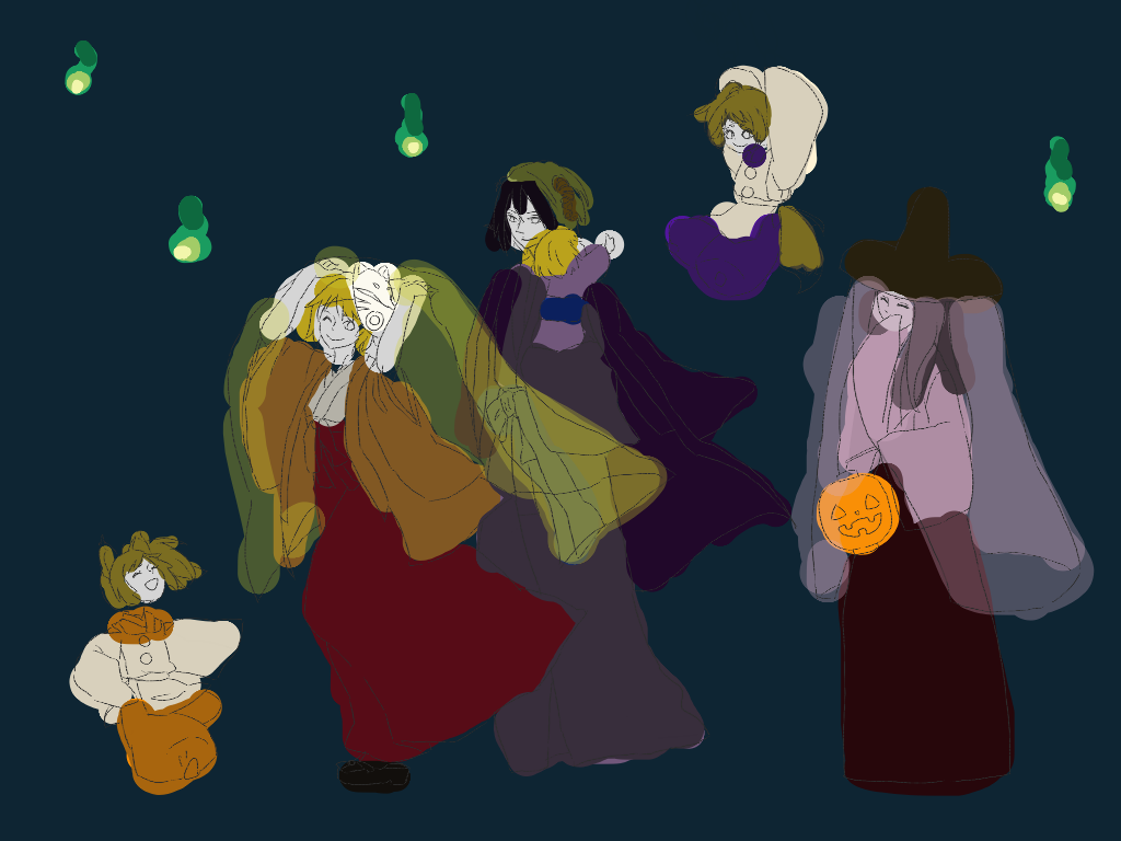 カナリァメンバー「鬼焔組」によるハロウィン夜行になる予定の構図。