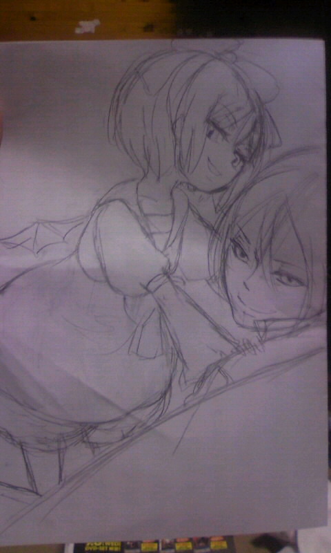 ちまっこいのは仔狐。前が左近、上が右近、で、右近は鴉天狗に掴まってる(予定)。