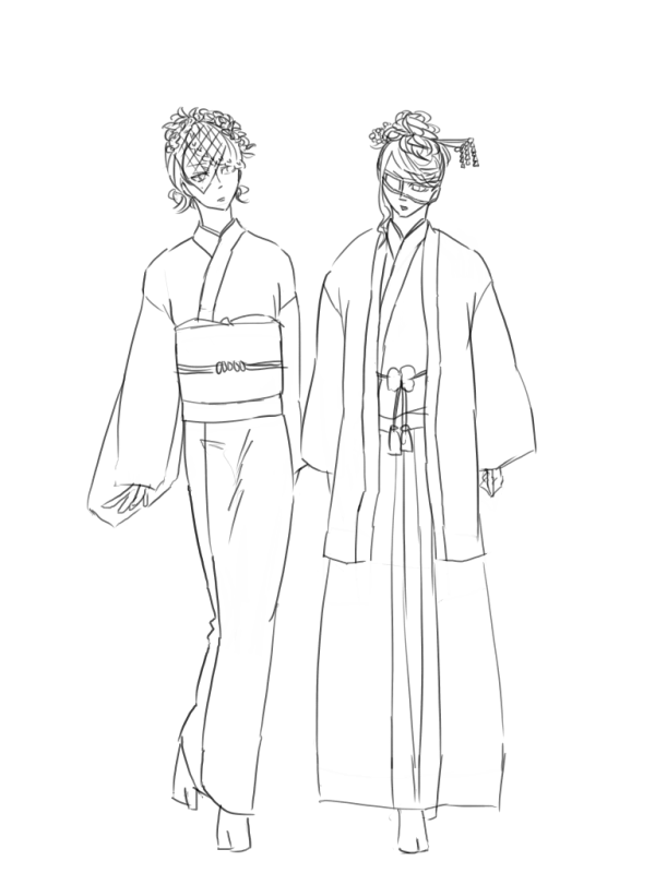 10分以内に1RTされたらエイジア王の着物姿を描くってお題が診断メーカーで出たんだけども、まぁ、御母上からRTされたので描いたよね。